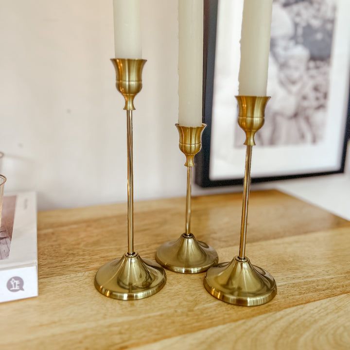 Brushed Gold Candlestick Holders – Set Of 3