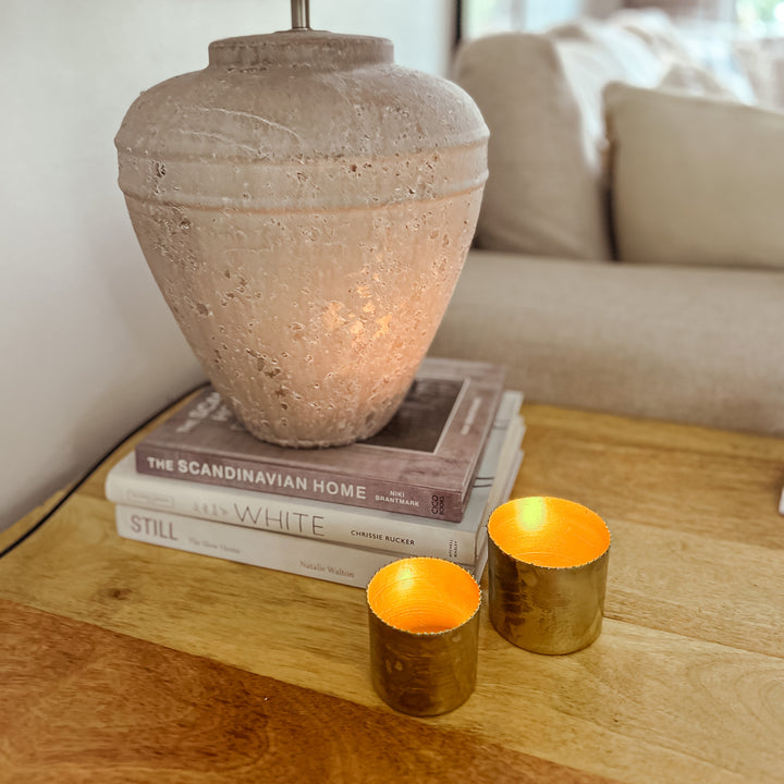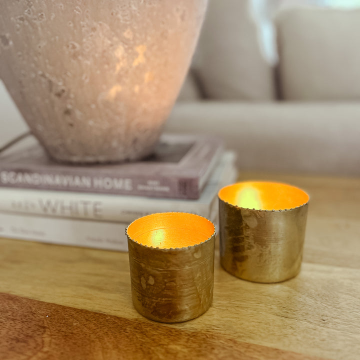Brushed Gold Metal Tea Light Holders - Set of 2