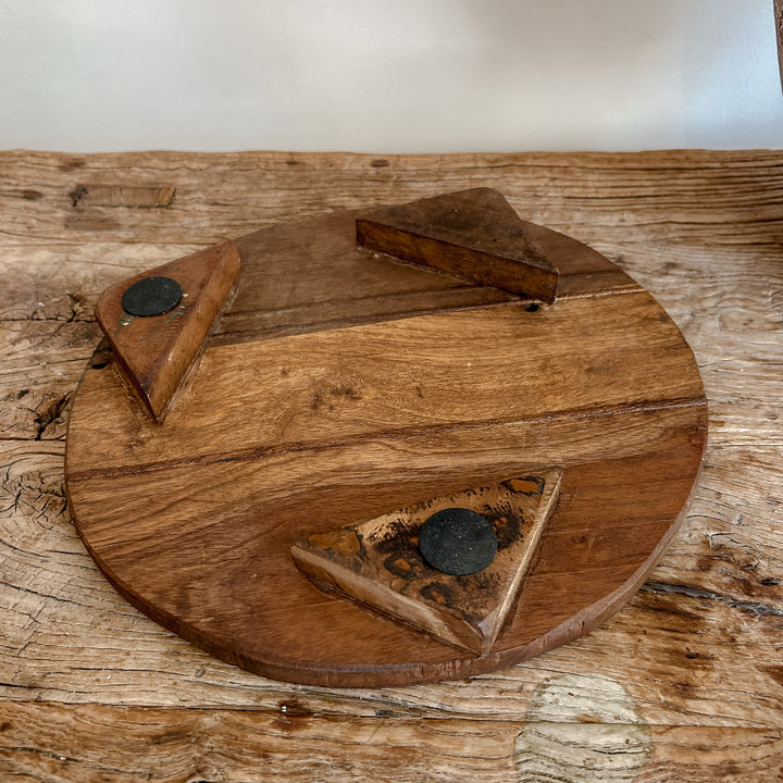 As this is vintage, no two are the same, giving each piece beauty and individuality. Please note that we have a mix of handless boards and boards with a handle. We cannot guarantee which style you'll receive but they are all equally beautiful. These pieces are made from Shorea Robusta (or Sal Wood) which is a tree native to India where the products are made. Our vintage pieces are either original or are carved from recycled Shorea Robusta wood.