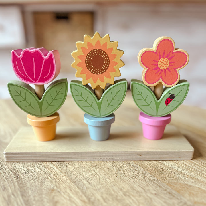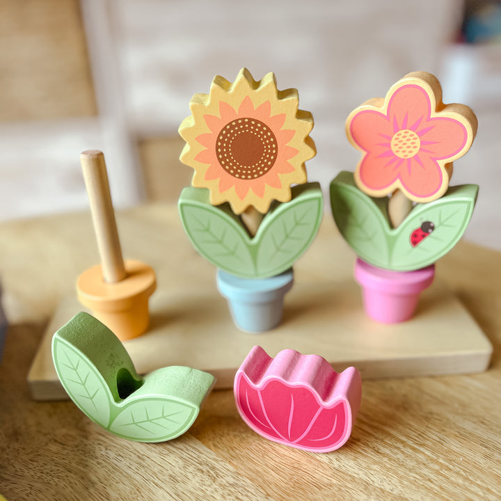 Wooden Stacking Flower Pots Toy - Toddler Christmas Gift